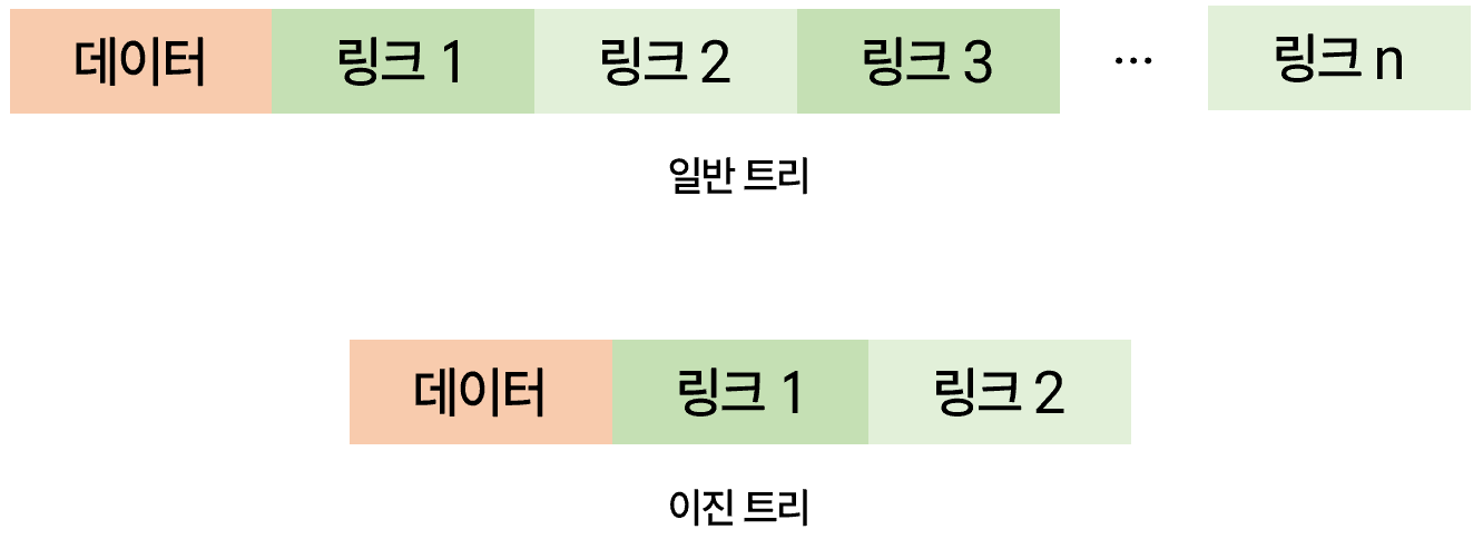 - 일반적인 트리에서 각 노드들은 서로 다른 개수의 자식 노드를 가짐