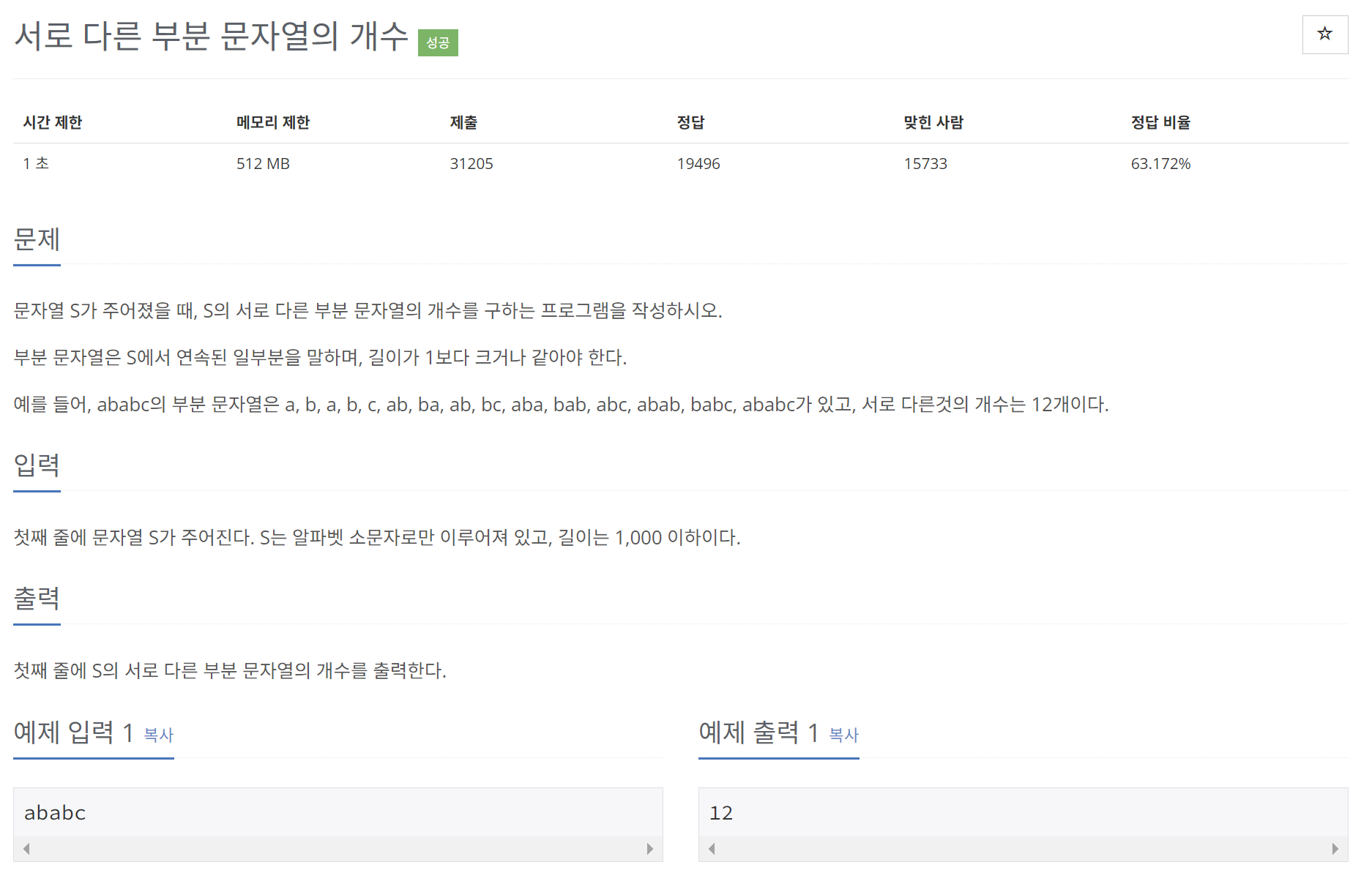 길이가 i인 부분 문자열을 모두 구하려면 substring(0, i+1)부터 beginIndex와 endIndex를 1씩 증가시키며 반복해야 하므로 위와 같이 작성할 수 있다. 이때 서로 다른 부분 문자열만을 카운트해야 하므로 if-else문을 사용해 중복되지 않는 문자열만 컬렉션에 추가해 준다. 시간복잡도를 고려하여 list는 HashSet으로 선언한다(ArrayList 등을 이용하면 시간 초과).