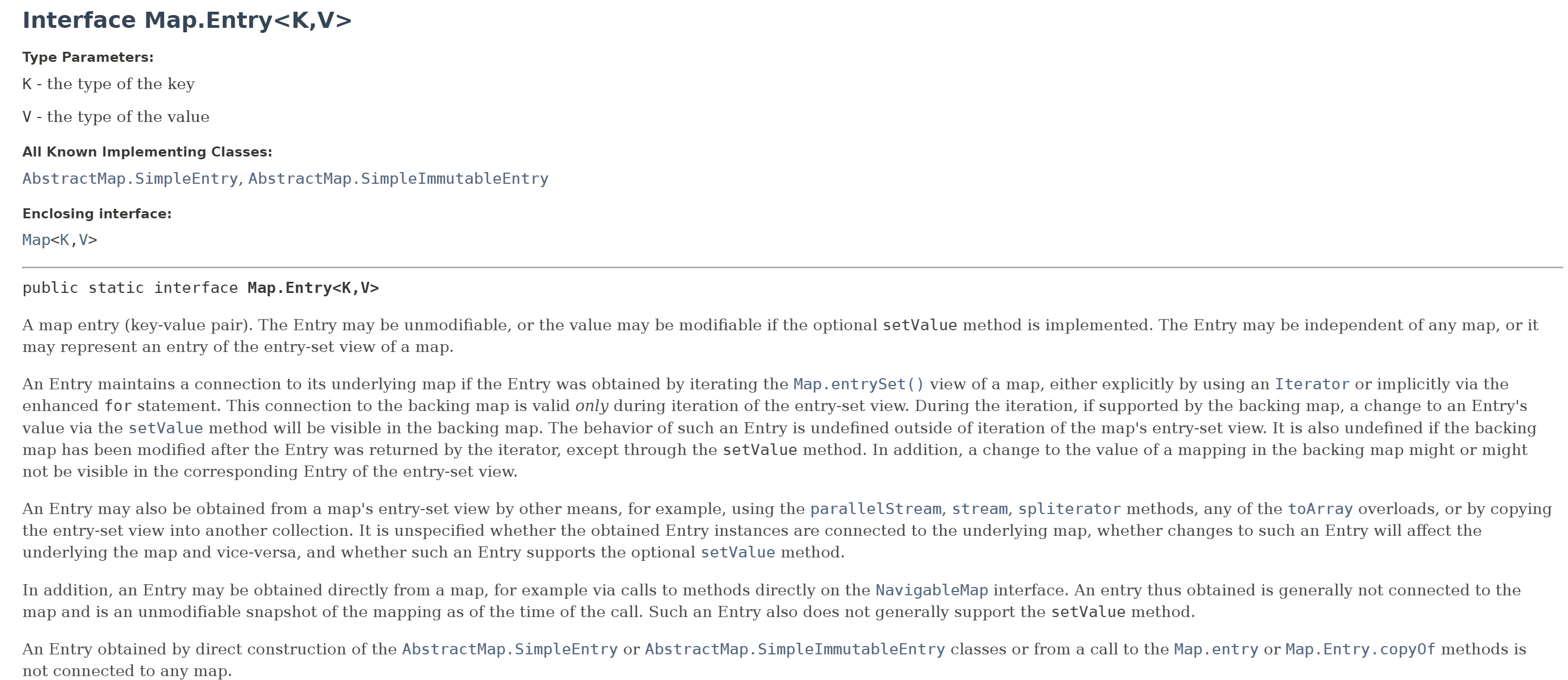 Map.Entry를 사용하여 맵에 저장된 key-value 쌍을 하나의 객체로 저장할 수 있으며, getValue() 메소드를 이용해 value에 접근할 수 있다(getKey()도 마찬가지)