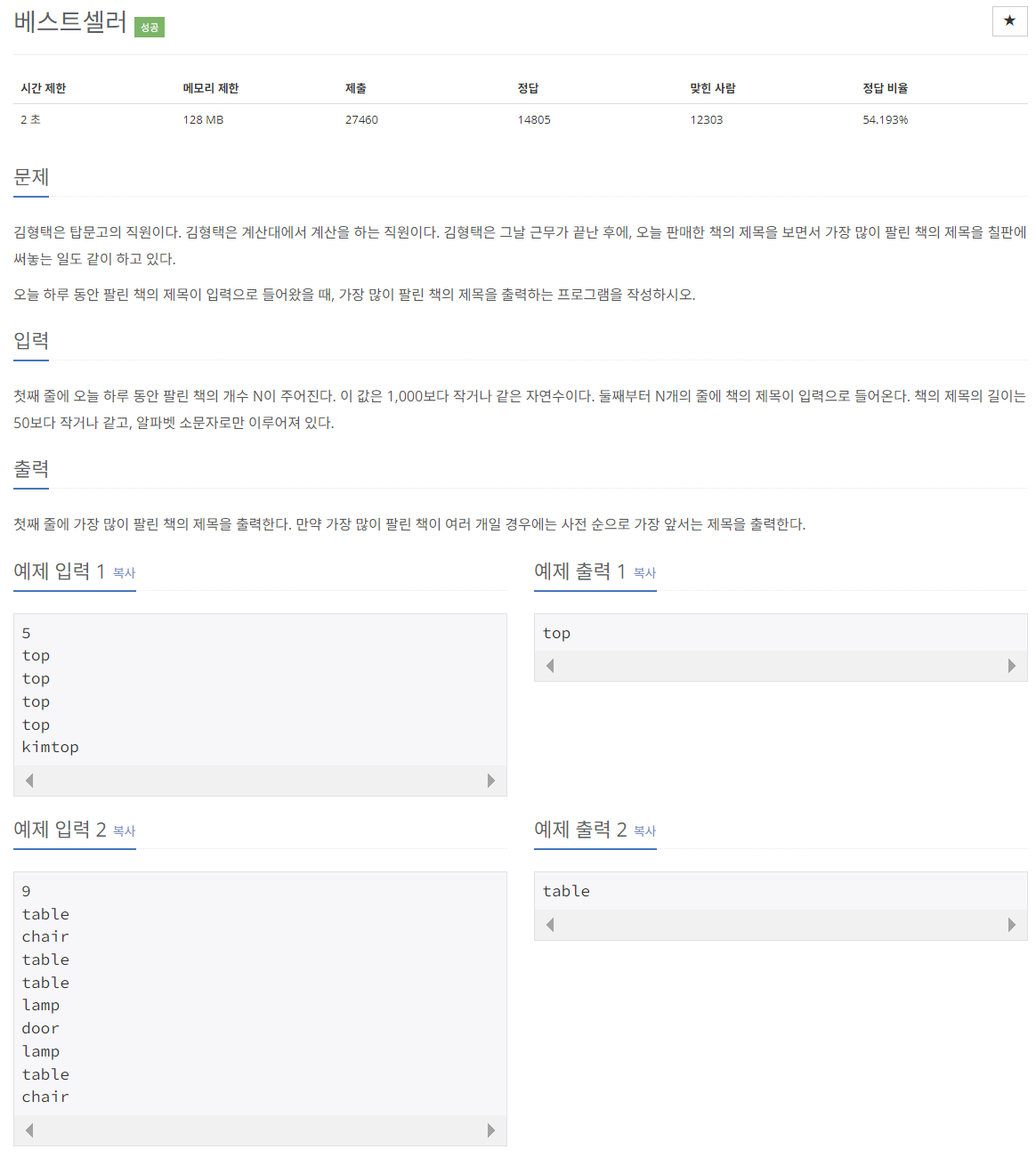 제목과 해당하는 판매 횟수를 대응시켜야 하므로 HashMap<String, Integer>를 사용하였으며, 풀이 과정은 크게 아래 3단계와 같다.