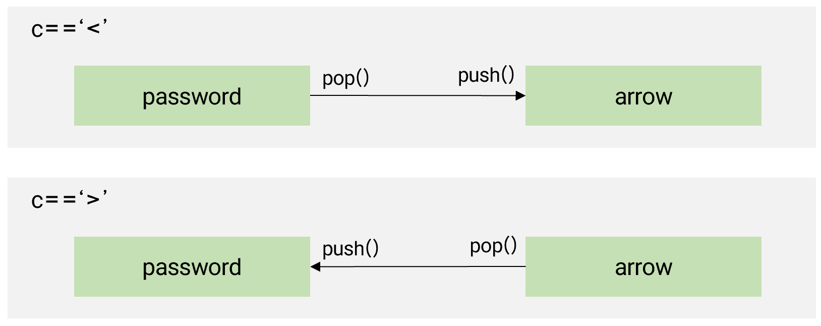 문자열 길이만큼 반복을 완료한 후, arrow 스택에 남아 있던 문자들을 모두 password 스택에 push하면 마무리된다.