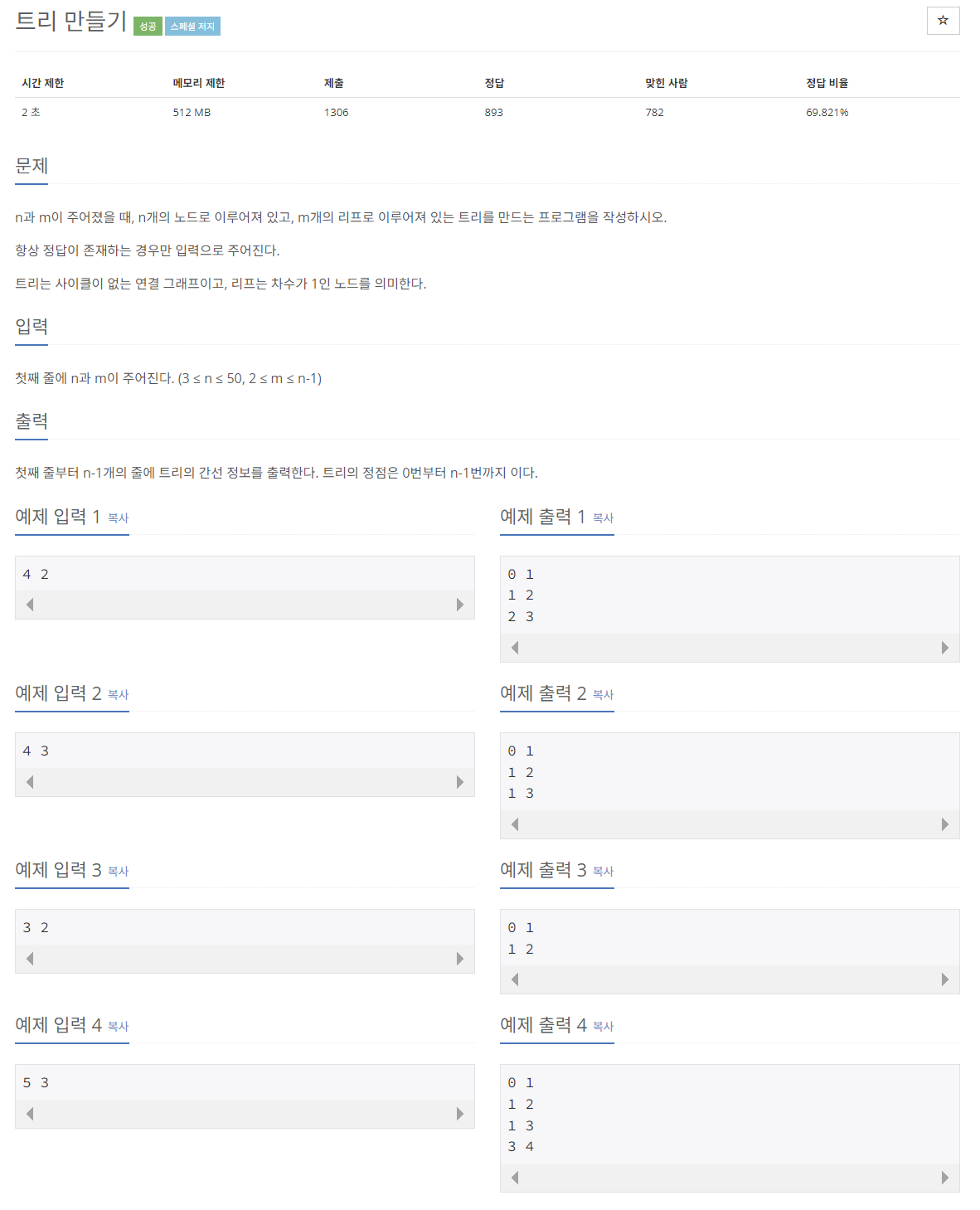 for(int i=0; i<n-m; i++) { //정점 (n-m-1)까지 바로 다음 정점과 연결