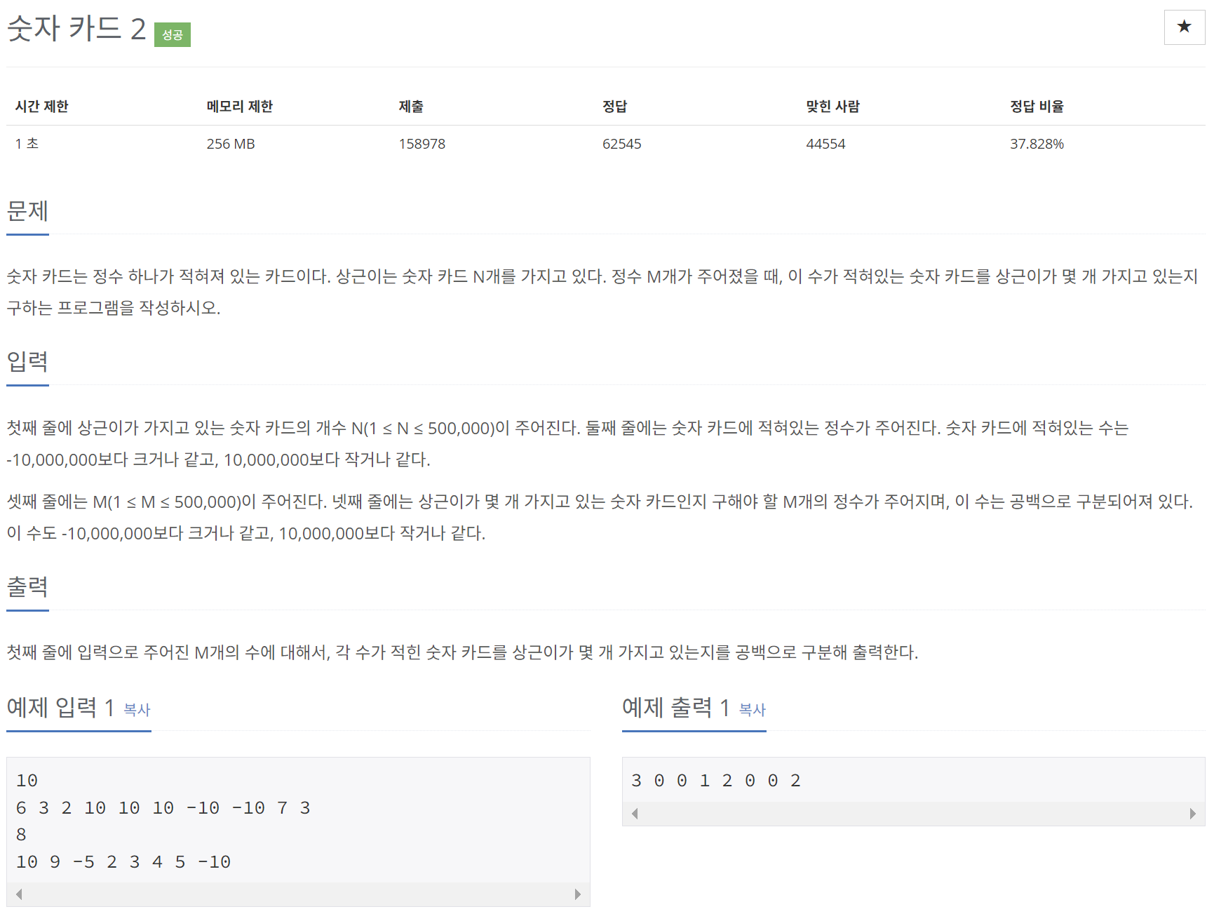 이후 해시맵에서 원하는 카드의 장수를 찾아 출력하면 된다.