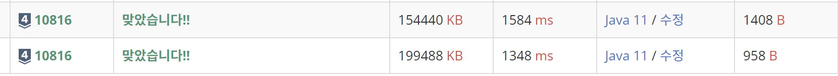 이분 탐색(위)보다 해시맵(아래)가 조금 더 빠른 듯 하다.