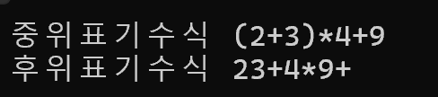 중위 표기법과 후위 표기법은 피연산자의 순서가 동일하지만, 연산자들의 순서가 다르다. 연산자들의 순서는 우선순위에 따라 달라진다.