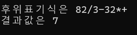 후위 표기 수식 82/3-32*+을 스택을 이용해 계산하는 경우 스택의 내용은 아래와 같다.